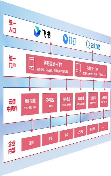 对协作平台提供支持服务,,支持企业应用与协作平台对接,,,包含组织同步、、消息集成、、、、待办集成等。。支持目前主流的协作平台:钉钉、、、企微和飞书。。